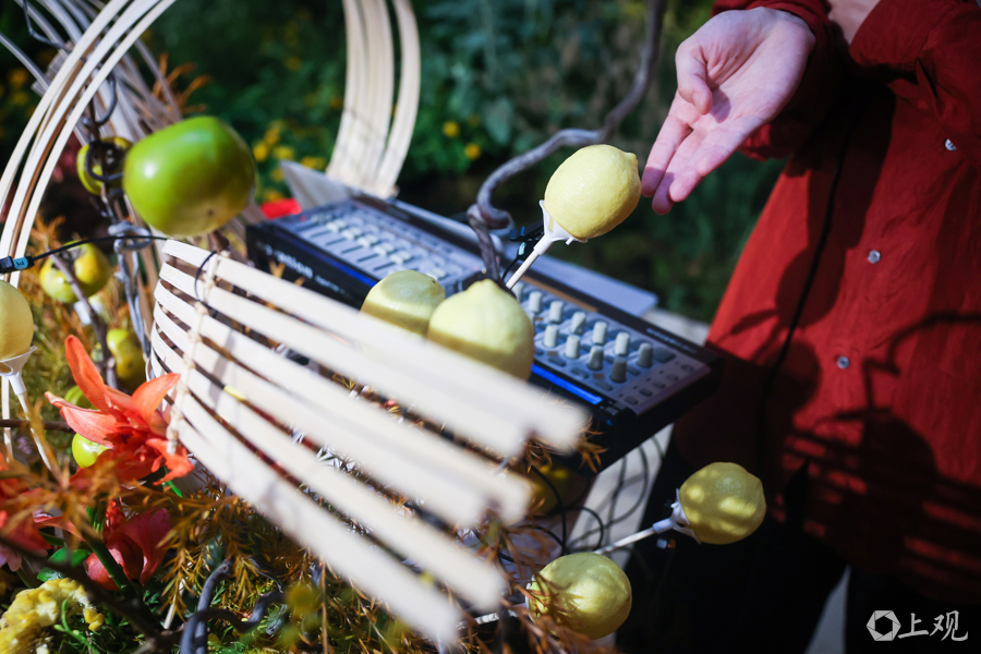 “声音烟火”生物电音演出精彩呈现,演奏者通过传感器捕捉“竹”的生物电信号,带来一场融汇自然、科技与艺术的即兴协奏。